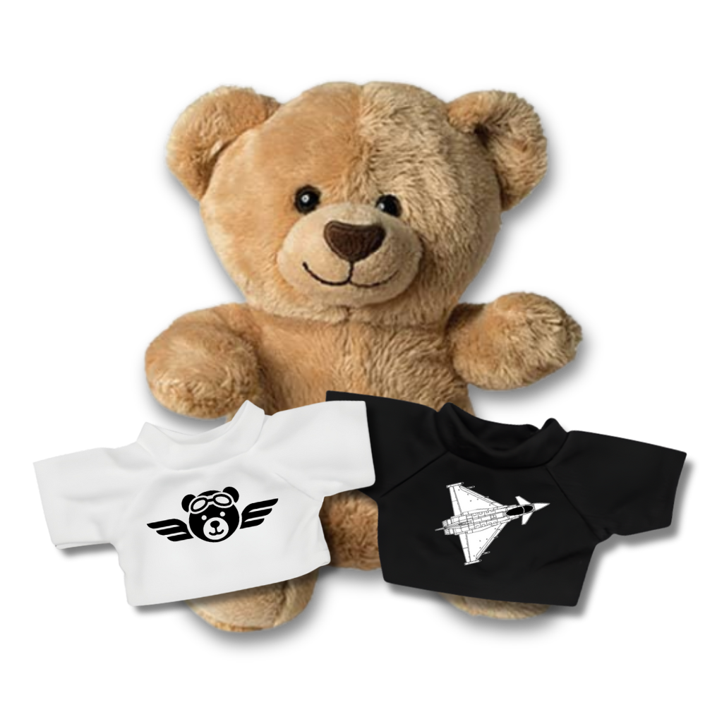 Jeder Bär trägt zwei wechselbare Shirts und reist liebevoll verpackt in einer kleinen Stofftasche – bereit, ein neues Zuhause zu finden oder verschenkt zu werden.