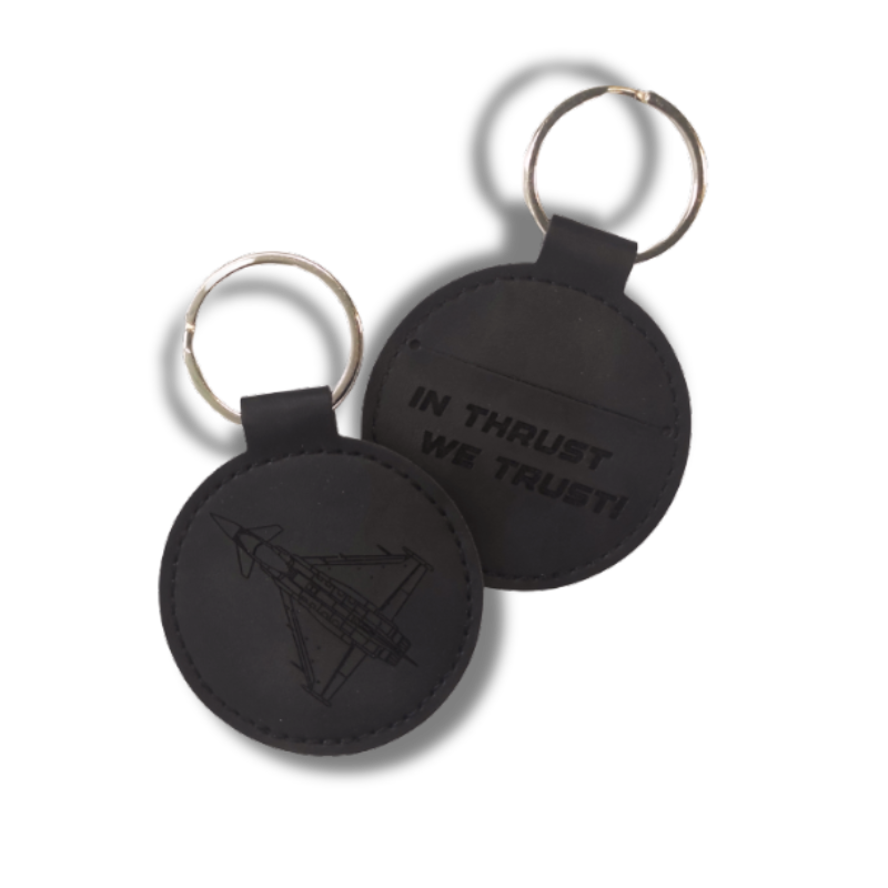 Schlüsselanhänger mit Einschub Eurofighter "IN THRUST WE TRUST" - PU Leder
